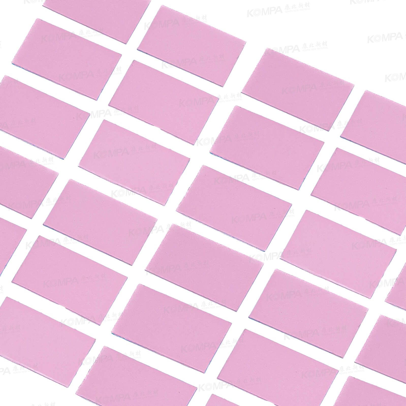 Each thermal pad is protected with a PET release liner on both sides to prevent contamination and deformation. Pads are stacked in layers, separated by film or interleaving paper to avoid surface damage.
